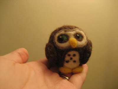 Just for fun, here is a picture of another owl I made a while back under Amy's tutelage. I haven't named him yet. I guess he could be Errol, but I always pictured Errol to be skinny and kinda distressed-looking. So maybe this is no post owl at all. Anybody have a good idea for a name?